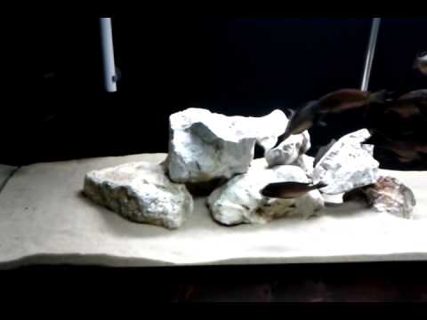 After a long day at work, I finally managed to get the new livestock for my 125 gal today. These happen to be the adults of the WC and F1 Troph sp. Red "Lunangwa South" colony that used to be with Justin, and they are making the tank look small. Some of the biggest Tropheus I've ever seen!