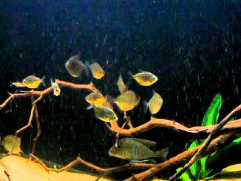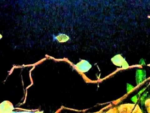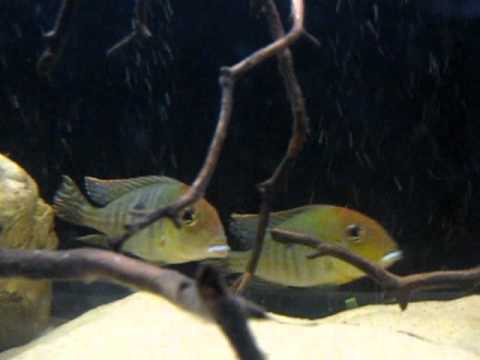 The original pair seems to be hangin out more in Cranky's old spot on the left of the tank. They wouldn't go there at all but then today I fed them on that side and now they like it over there. They're digging a new pit there! I think Tiny is trying to hook up with the new lady but she's not havin it as yet. Enjoy! :)