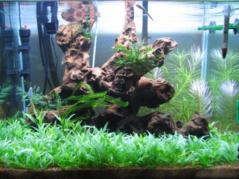 I'll probably have to trim the foreground pretty soon. That stuff grew in so fast I'm still amazed that I don't have any bare spots that I need to wait to grow in! I was thinking tonight, "Well! Nothing to do with this plant! It's done its job."