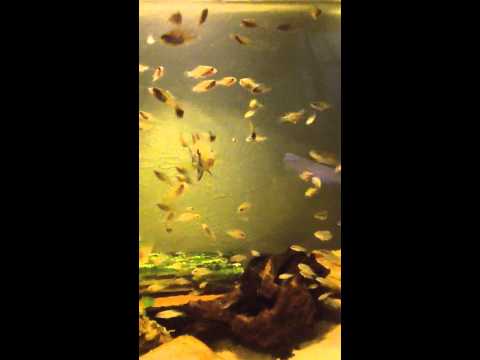 another week older. the endler fry and one pleco get in the video. Dad wanted a little time too.