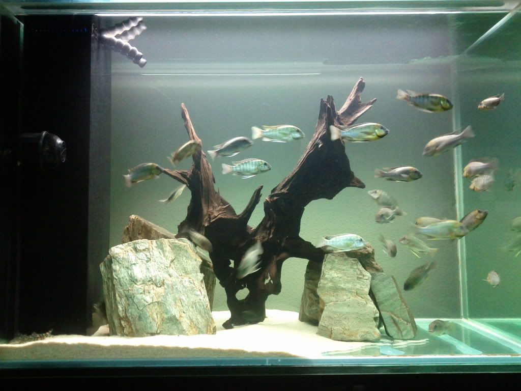 Yeah the damn return pump is loud so i have to add music to cover the racket. I don't wanna move that big rock because it's part of the alpha male's territory. Plus it's helping pro up the driftwood.