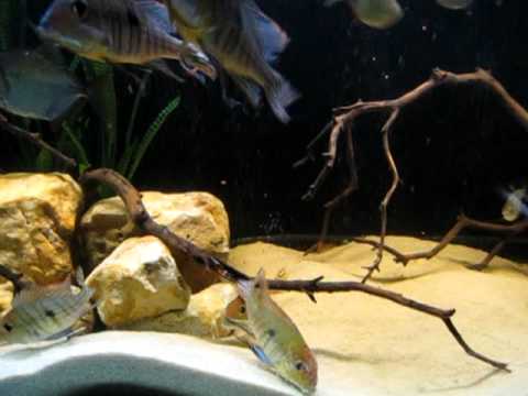 Thanks Suntown! Those geos gotta compete with the silver dollars for food... I was feeding them some frozen food today and the geos totally lost out. In the week or so that I've had 'em, the silver dollars have nearly doubled in size too!