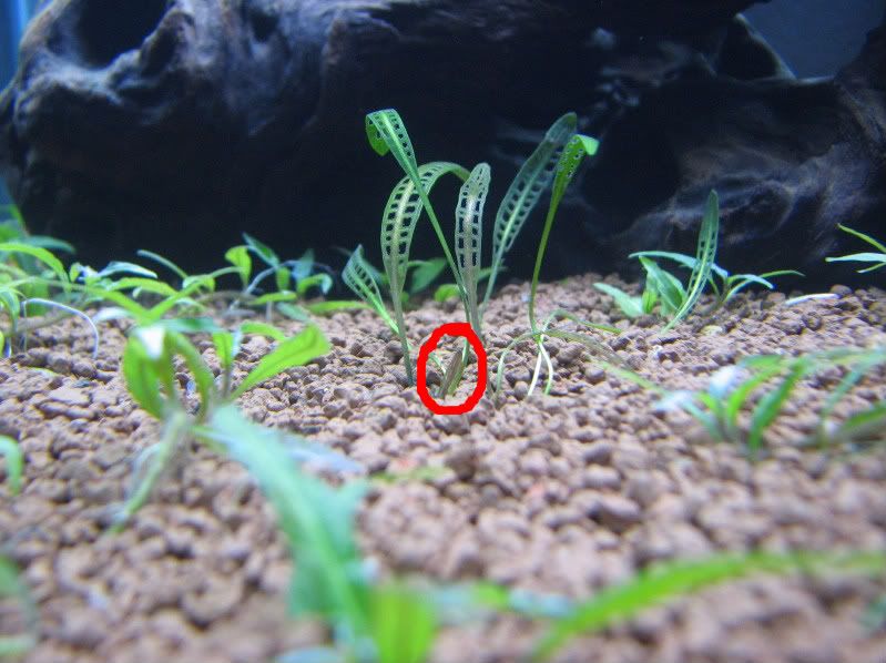 Didn't cut the exposed roots, though. IME, Hygro-types are pretty fast growers, and those roots should find their way into the soil in no time. I've noticed that even within 24 hours they've started turning towards the lights as well as growing lengthwise. So I think they're good to go.