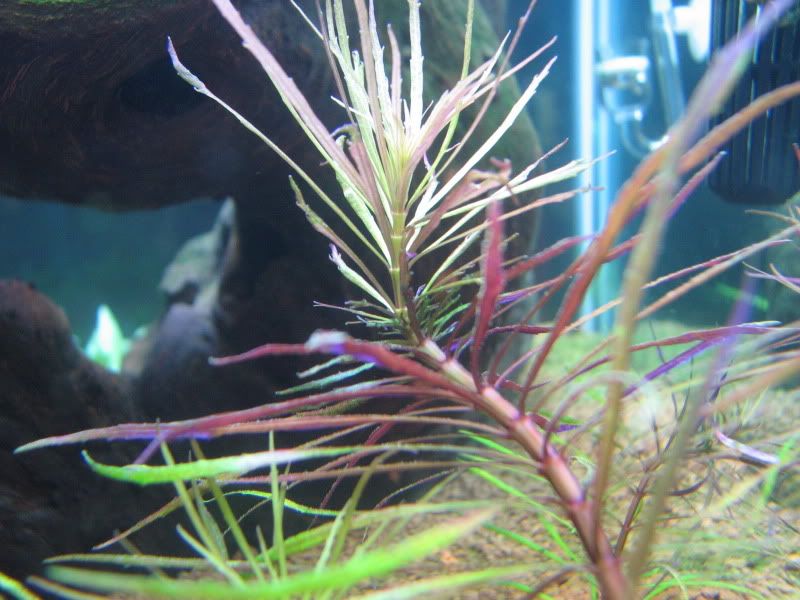 And I'm confused about what the plants in the back are doing. They seem torn whether to grow or stay where they are. I've noticed lots of new roots growing from the nodes just above the substrate, which is good. And some really compact growth seems to be coming from the tops, but I'm still not sure if it's because I previously had it in a tank with lower lighting, and it's figuring out what to do, or if I'm giving it too much light.