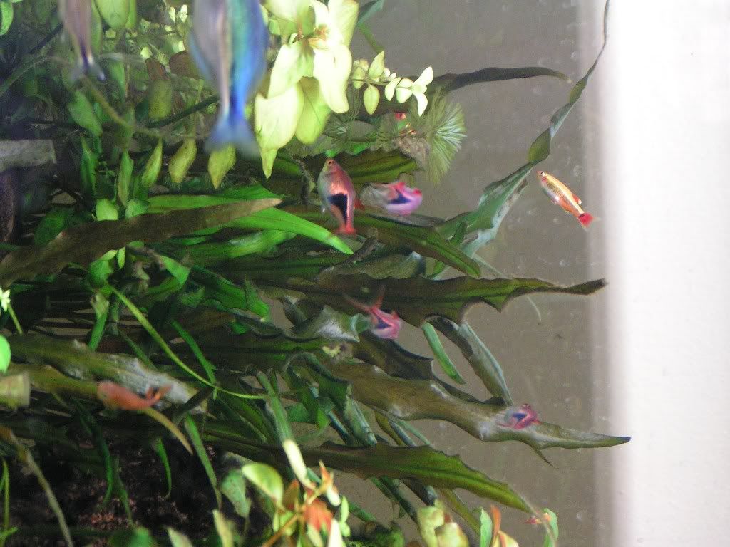 below are some current resident (some have been with me for a while), with all efforts i just could not take some good close-ups of my AMAZING congo tetras, so i did not post any, i also could not do so for my bleeding hearts, i got some turquise rainbow pix, but not really as nice as they look in person