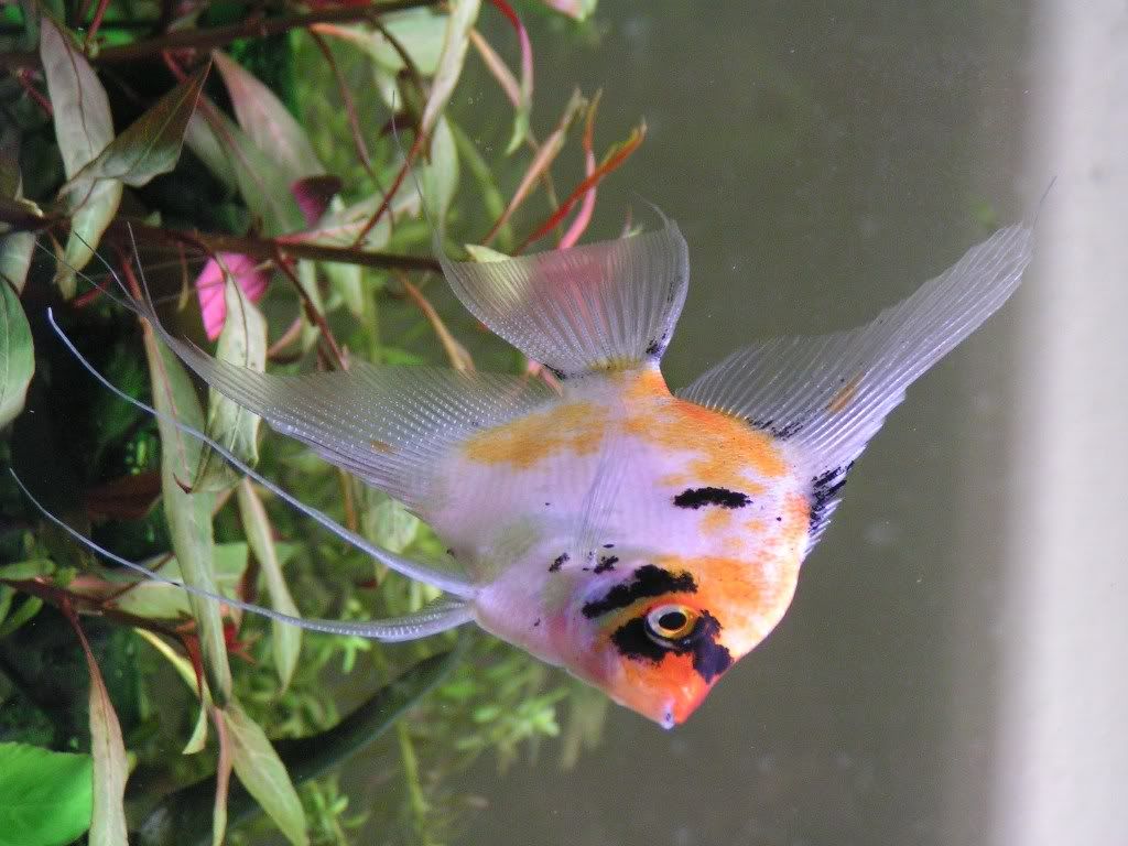 very regal koi angel, he is always in front center for pix, can't picture plants because he is always blocking view :)