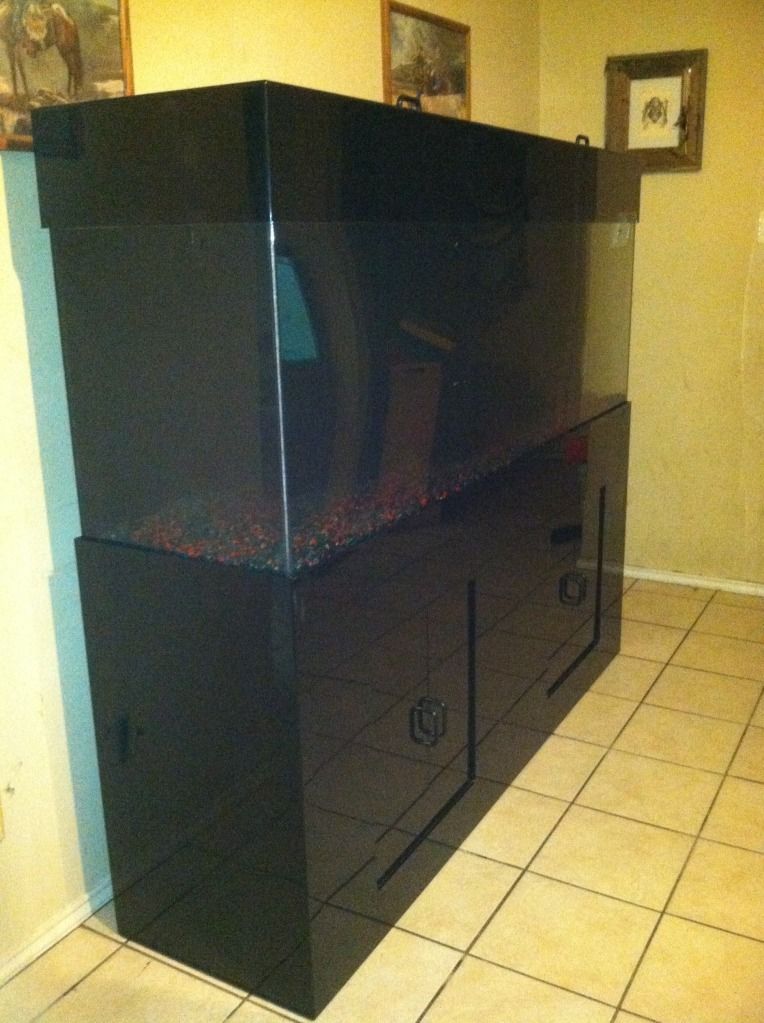 That decision to move the demon & the gouramis into the oscar tank led us to an 8 hour "fish day". After we moved everyone to their new homes, we decided to attempt to set up the 180g. Having no knowledge of a wet/dry filter system, I was thinking this wasn't going to be an easy task. Thank goodness my hubby was a plumber for 10 years! One trip to Home Depot & he whipped that thing back together like it was nothing. My little heart went pitter patter. *proud moment*