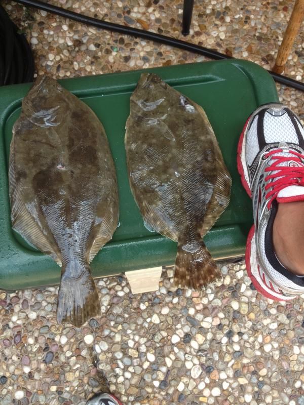 Saturday night we gigged 2 flatties--a 15"er and a 17"er. We saw some larger flounder beds with no flounder there. The smallest flounder was about 1' from the shoreline. We saw a small stingray.