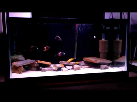 They all at least 1"+ and eating very aggressively. Black and orange already starting to show through at this point although bands not defined yet. Very distinct colors already. The First batch I'm growing out looks to be showing great potential already. Pretty Wide bands already showing through in the larger dominant males.